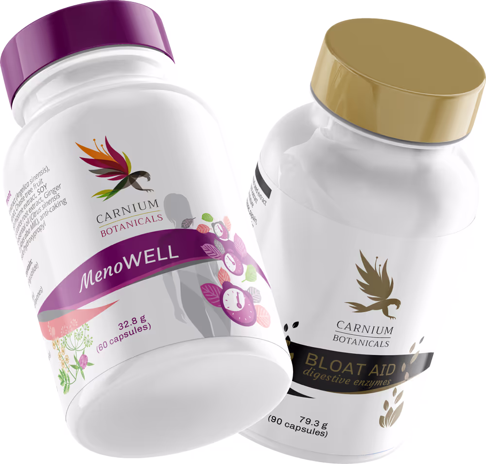 S kombinacijo dveh naravnih, preverjenih, zeliščnih kapsul, nagovoriš dve muhi na en mah. Formulacija MenoWELL poskrbi za umirjanje simptomov menopavze, prebavni encimi BloatAid pa pomagajo želodcu, da se spet okrepi. Podpri svoje telo brez nepotrebnega dodatnega stresa. Pozitivne učinke boš opazila že v prvem tednu!
